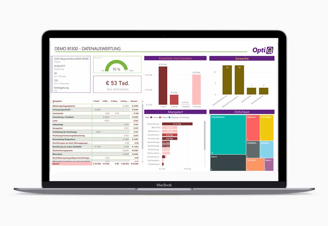 Alle gesammelten Daten werden im Live-Dashboard grafisch aufbereitet. Auf einen Blick sehen Sie beispielsweise wie viele Inspektionen in einem Monat durchgeführt wurden.