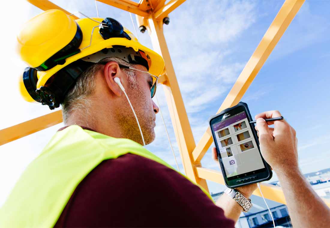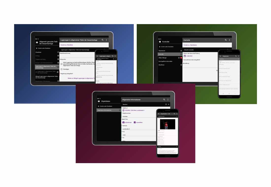 Mit dem Smartphone oder Tablet kann jeder Prüfer oder jede Prüferin online und offline auf die Checklisten zugreifen. Fotos oder GPS-Koordinaten können per Knopfdruck erstellt und in den Bericht integriert werden.