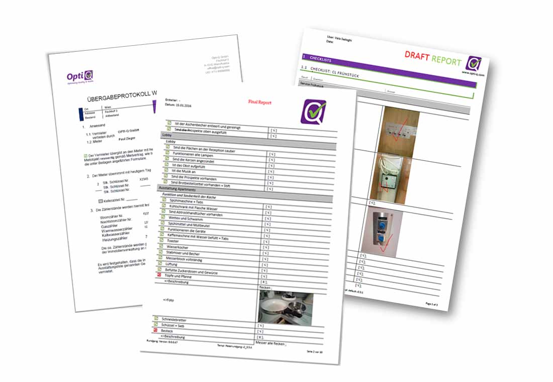 Mit iCL erstellen Sie Berichte auf Knopfdruck. Die Vorlage lässt sich nach Ihren Vorgaben gestalten. Fotos, die während der Prüfung aufgenommen wurden, werden automatisch in den Report eingefügt.